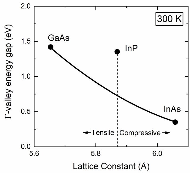 To understand the intrinsic stresses and strains within a laser diode bar, it is essential to first take a step back and understand the importance of lattice matching between the diode and its substrate. It is relatively common knowledge among laser engineers that the stoichiometry of the diode material (the relationship between the relative quantities of the base elements making up the material structure) determines its bandgap energy and therefore it’s center wavelength. But as the stoichiometry varies so too does its lattice constant. While small, this change does lead to a slight lattice mismatch which adds either compressive or tensile strain to the active area of the diode, as shown in the figure below.
